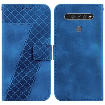 For LG K61 7-shaped Embossed Leather Phone Case(Blue)