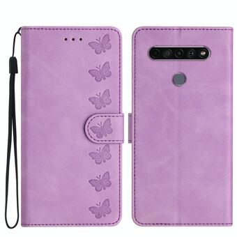 Για LG K61 Επτά πεταλούδες ανάγλυφη δερμάτινη θήκη τηλεφώνου (μωβ)