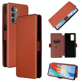 For LG Wing 5G Carbon Fiber Texture Horizontal Flip TPU + PC + PU Leather Case with Card Slot(Brown)