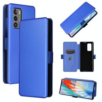 For LG Wing 5G Carbon Fiber Texture Horizontal Flip TPU + PC + PU Leather Case with Card Slot(Blue)