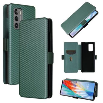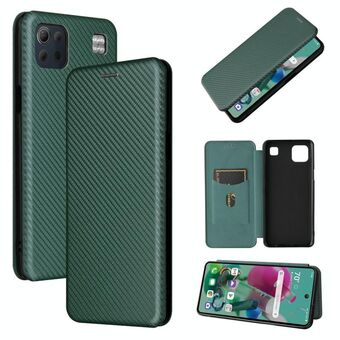 For LG Wing 5G Carbon Fiber Texture Horizontal Flip TPU + PC + PU Leather Case with Card Slot(Green)