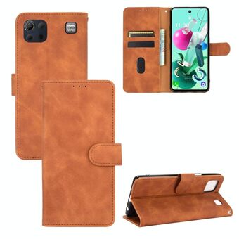 For LG K92 5G Solid Color Skin Feel Magnetic Buckle Horizontal Flip Calf Texture PU Leather Case with Holder & Card Slots & Wallet(Brown)
