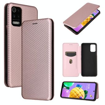 For LG K52 / K62 Carbon Fiber Texture Horizontal Flip TPU + PC + PU Leather Case with Card Slot(Pink)