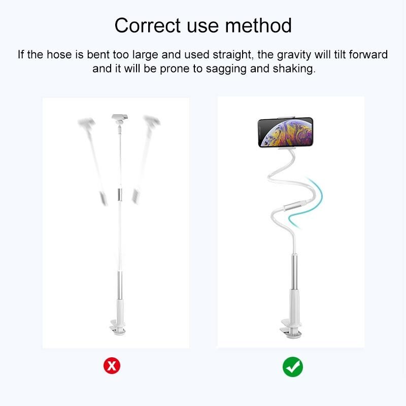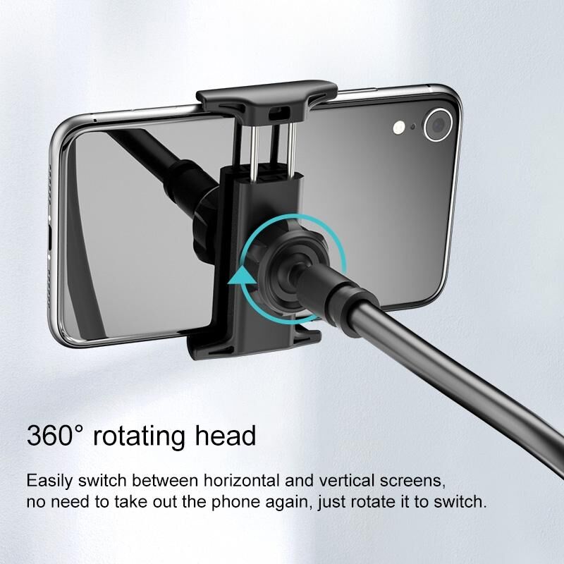 4. Features: flexible and stable support rod, elastic phone clip, 360-degree adjustable