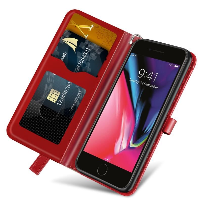 Θήκη δέρματος με ανάγλυφο σχέδιο "Δέντρο Ζωής", οριζόντιο άνοιγμα, με βάση, θήκη καρτών, πορτοφόλι, κορνίζα φωτογραφιών & λουρί για iPhone 6 & 6s (Χρυσό Ρόδι)