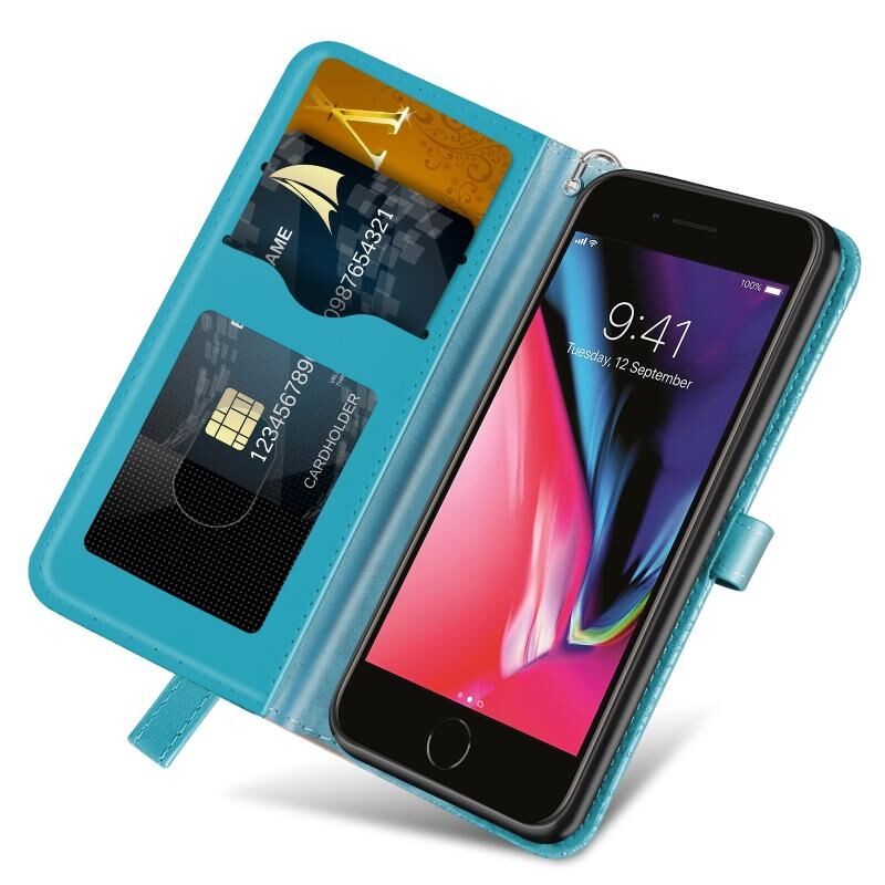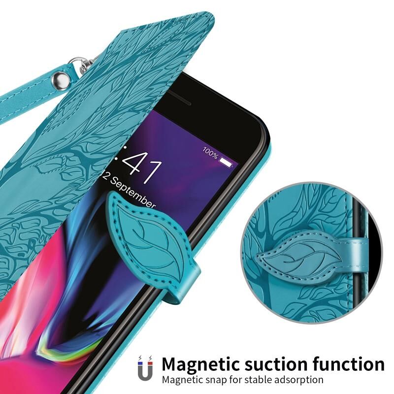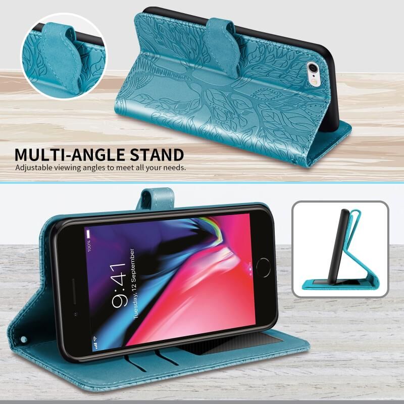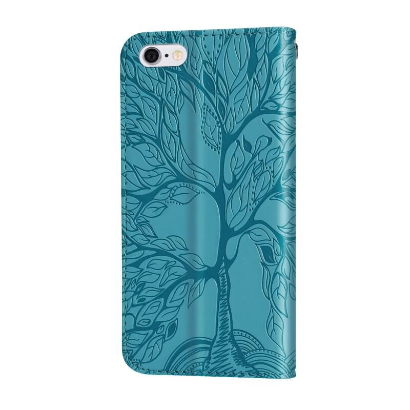 Θήκη δέρματος με ανάγλυφο σχέδιο "Δέντρο Ζωής", οριζόντιο άνοιγμα, με βάση, θήκη καρτών, πορτοφόλι, κορνίζα φωτογραφιών & λουρί για iPhone 6 Plus & 6s Plus (Χρυσό Ροζ)
