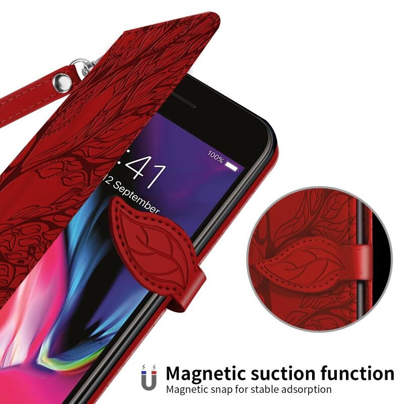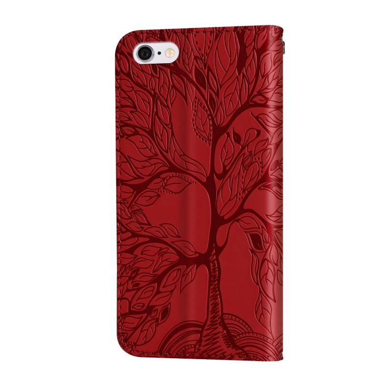 Θήκη δέρματος με ανάγλυφο σχέδιο "Δέντρο Ζωής", οριζόντιο άνοιγμα, με βάση, θήκη καρτών, πορτοφόλι, κορνίζα φωτογραφιών & λουρί για iPhone 6 Plus & 6s Plus (Χρυσό Ροζ)