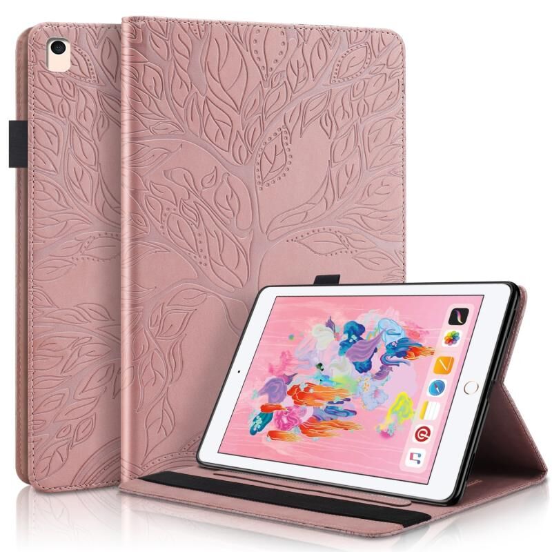 Θήκη δέρματος οριζόντιας αναδίπλωσης Life Tree Series με βάση & Θήκες καρτών & Θήκη στυλό & Λειτουργία ύπνου / αφύπνισης για iPad 9.7 (2018) / (2017) (Μαύρο)