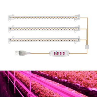 LED Plant Lamp Household Full Spectral Filling Hard Lamp Strip, Style: 50cm 3 Head(Pink Light EU Plug)