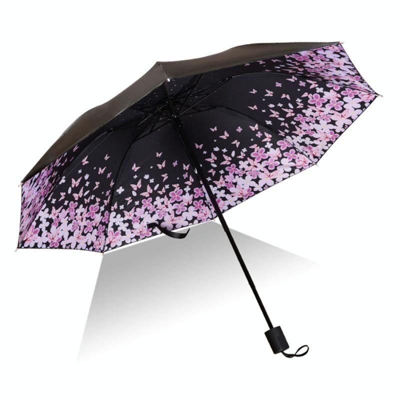 Ελαφριά Φορητή Τριπλά Διπλούμενη Ομπρέλα, Μαύρη Αδιάβροχη Αντι-UV, Μοτίβο F