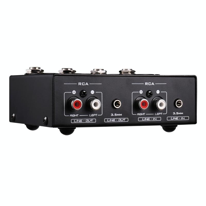 4. Four channel stereo 6.35mm and XLR and 3.5mm and RCA signal inputs and outputs.
