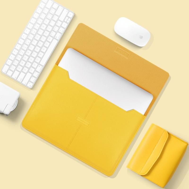 Litchi μοτίβο PU δέρμα αδιάβροχο εξαιρετικά λεπτή προστασία Liner τσάντα χαρτοφύλακα Laptop μεταφοράς τσάντα για 13-14 ιντσών φορητούς υπολογιστές (κίτρινο)