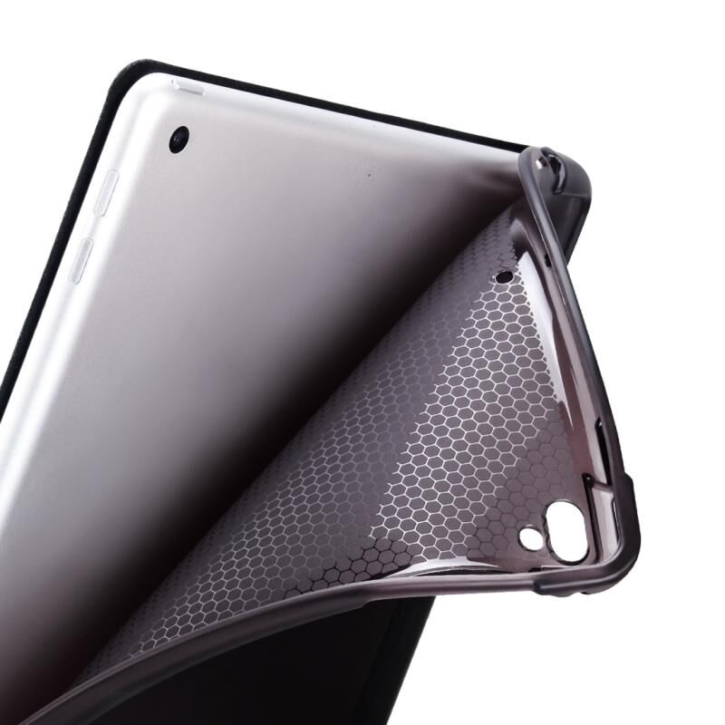 Θήκη δέρματος με υφή Litchi για iPad 9.7(2017) / 9.7(2018)/ Air2 / Air, με βάση τριπλής αναδίπλωσης & υποδοχές για στυλό (Μαύρο)