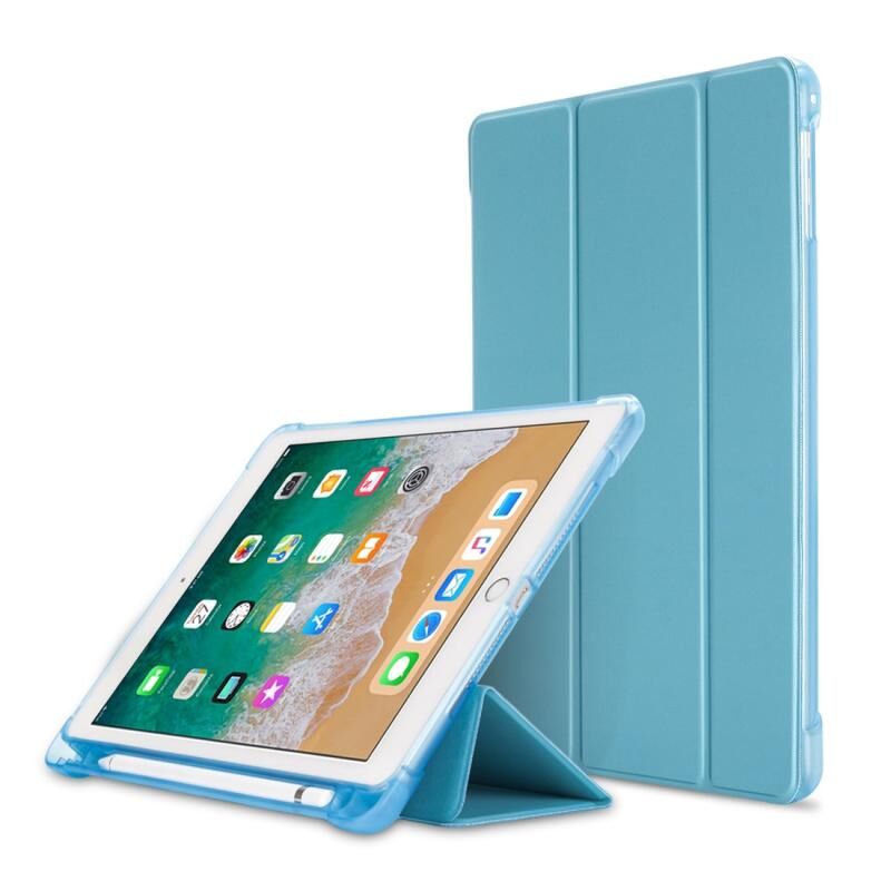 Θήκη δέρματος με υφή Litchi για iPad 9.7(2017) / 9.7(2018)/ Air2 / Air, με βάση τριπλής αναδίπλωσης & υποδοχές για στυλό (Μπλε)