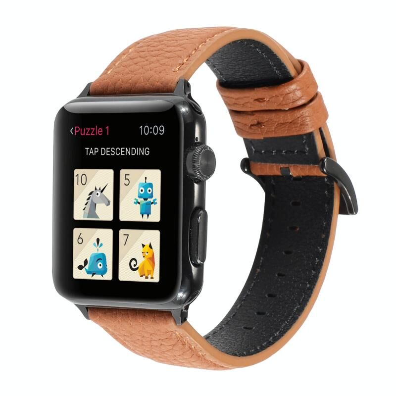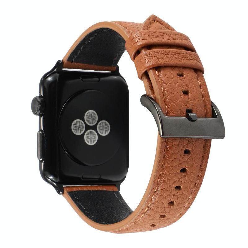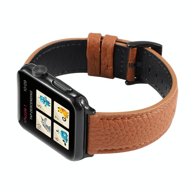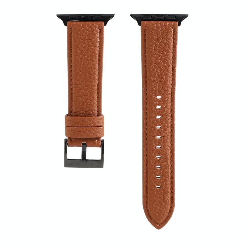 Λουρί ρολογιού από γνήσιο δέρμα με υφή litchi για Apple Watch Series 7 41mm / 6 & SE & 5 & 4 40mm / 3 & 2 & 1 38mm (Καφέ)