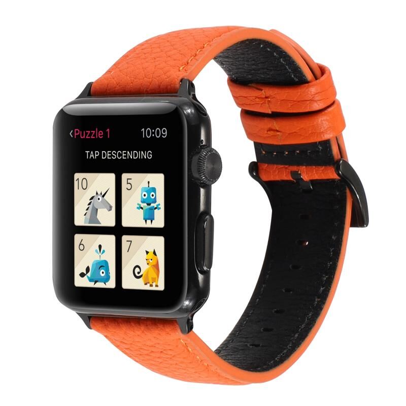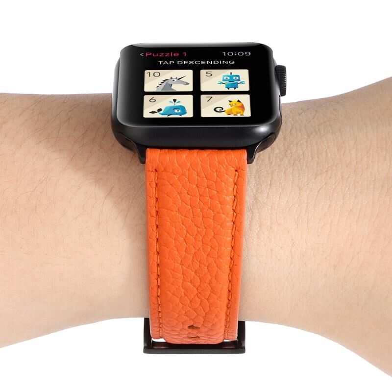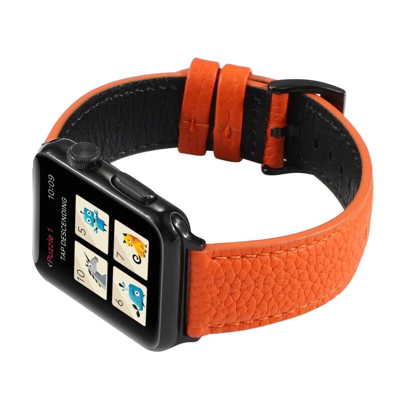 Λουρί ρολογιού από γνήσιο δέρμα με υφή Litchi για Apple Watch Series 7 45mm / 6 & SE & 5 & 4 44mm / 3 & 2 & 1 42mm (Πορτοκαλί)
