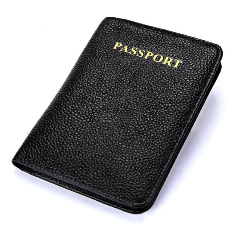 Πολυλειτουργικό πακέτο διαβατηρίου από γνήσιο δέρμα με υφή Litchi για ταξίδια (μαύρο)