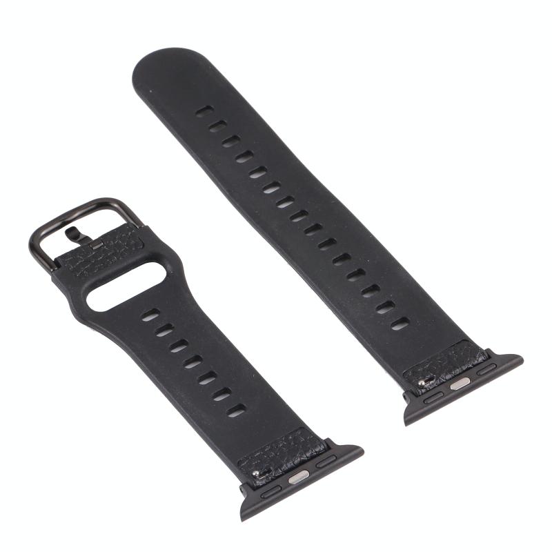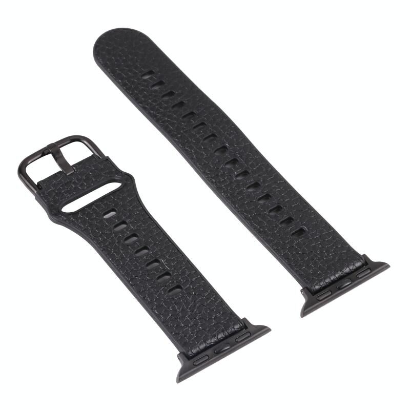 Λουράκι ρολογιού Litchi TPU για Apple Watch Ultra 49mm & Watch Ultra 2 49mm / Series 9 & 8 & 7 45mm / SE 3 & SE 2 & 6 & SE & 5 & 4 44mm / 3 & 2 & 1 42mm (Μαύρο)