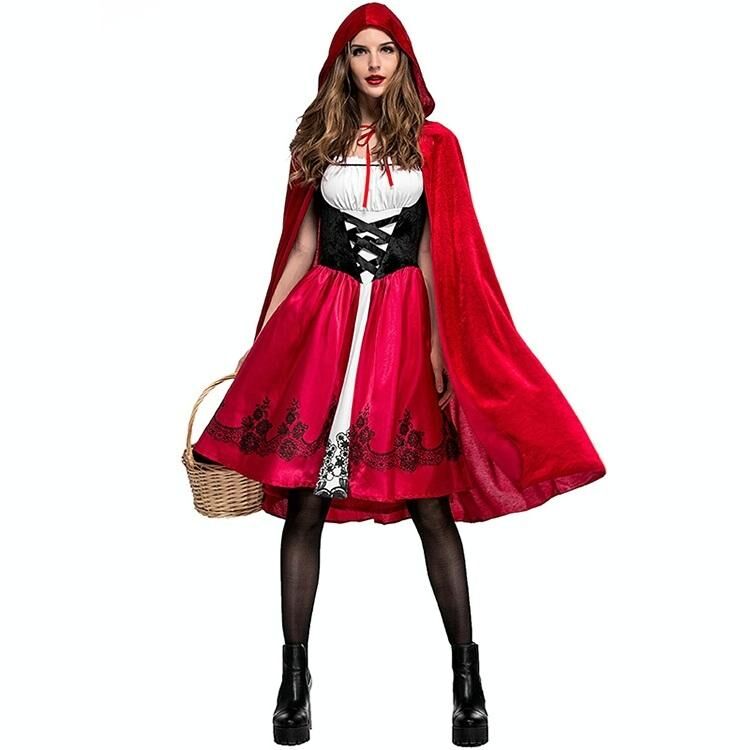 Little Red Riding Hood Costume For Adults Cosplay (Color:Red Size:L)