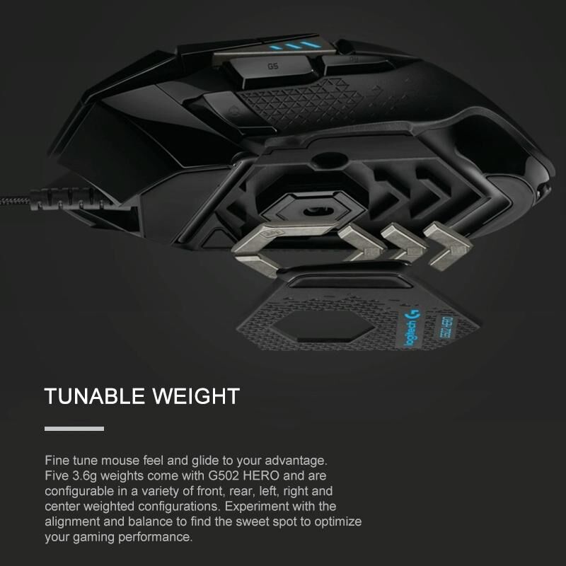 3. Fine-tune the mouse feel and give full play to your abilities. Five 3.6-gram counterweights are included to accommodate multiple weight combinations in the front, rear, left, right, and center zones. Try inline or balance with counterweights to find a comfortable feel and optimize handling.