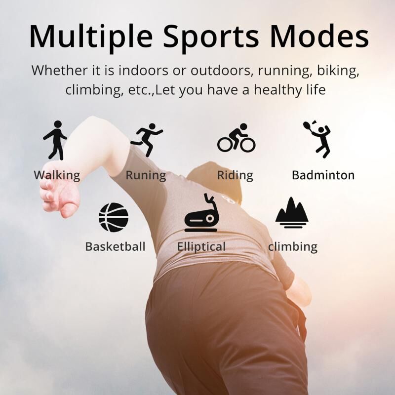 9. Functions: step counting, sleep, heart rate, blood pressure, blood oxygen, call reminder, multi-sports mode, find mobile phone, dial selection, stopwatch, music control, sedentary reminder, drink reminder, alarm clock, raise your hand to brighten the screen, dial Replacement, remote camera, phone SMS notification; WeChat, QQ, Twittre, Facebook, Whatsapp, Skype and other third-party information reminders