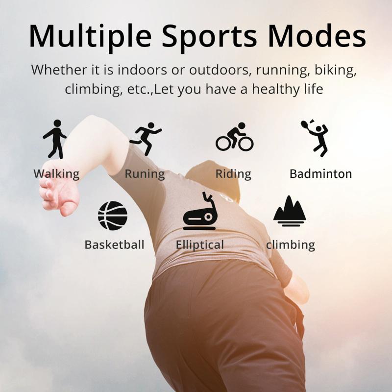 9. Functions: step counting, sleep, heart rate, blood pressure, blood oxygen, call reminder, multi-sports mode, find mobile phone, dial selection, stopwatch, music control, sedentary reminder, drink reminder, alarm clock, raise your hand to brighten the screen, dial Replacement, remote camera, phone SMS notification; WeChat, QQ, Twittre, Facebook, Whatsapp, Skype and other third-party information reminders
