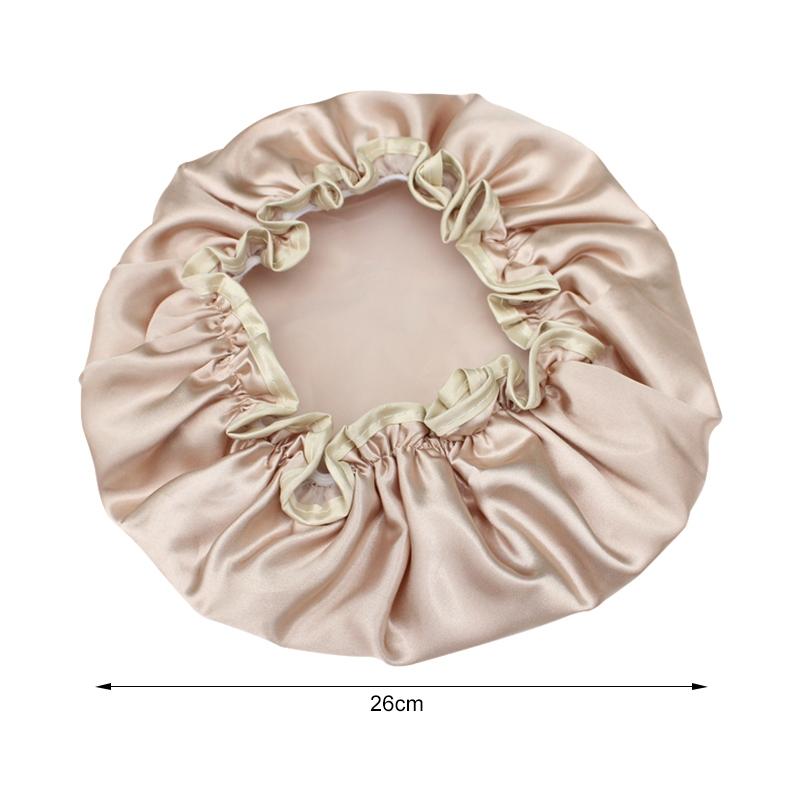 Lovely Thick Women Satin Colorful Double Waterproof Hair Cover Bathing Cap(Gold)