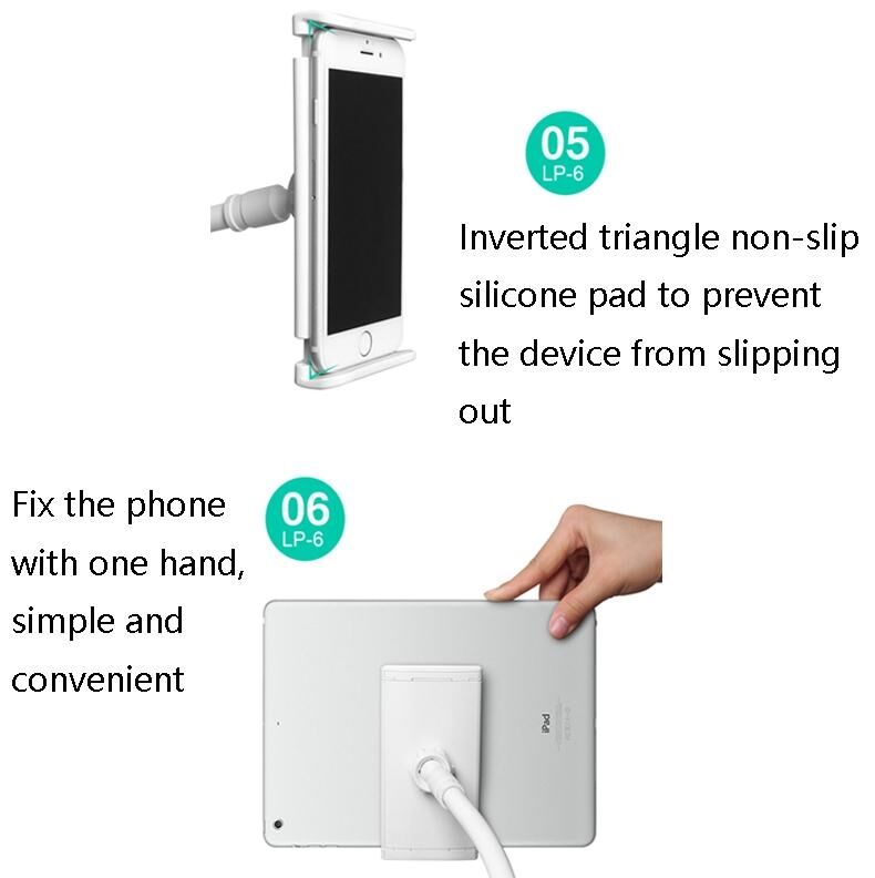 Βάση στήριξης για tablet/κινητό LP-6, αποσπώμενη βάση για κρεβάτι, Στυλ: Τριών σταδίων (Χρυσό)