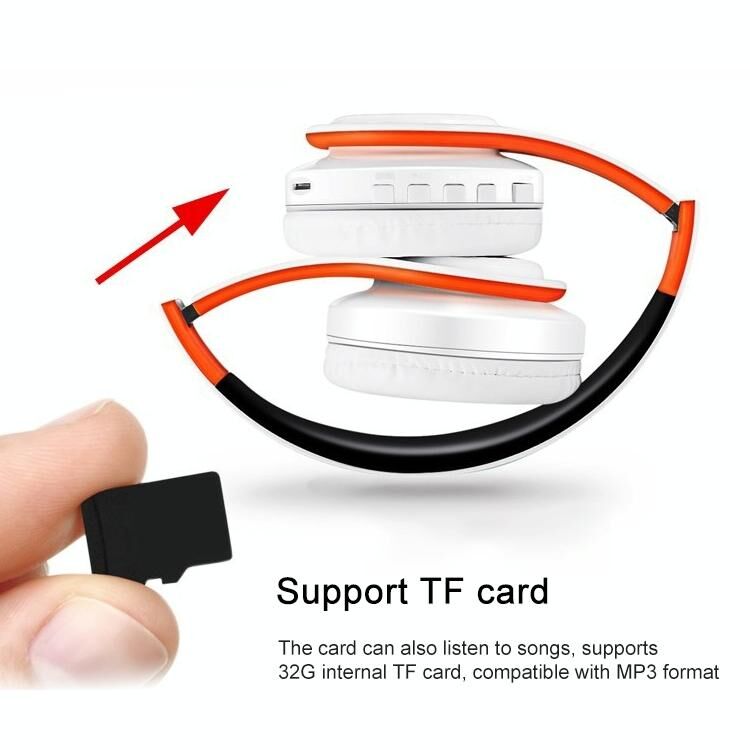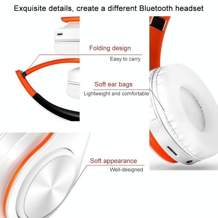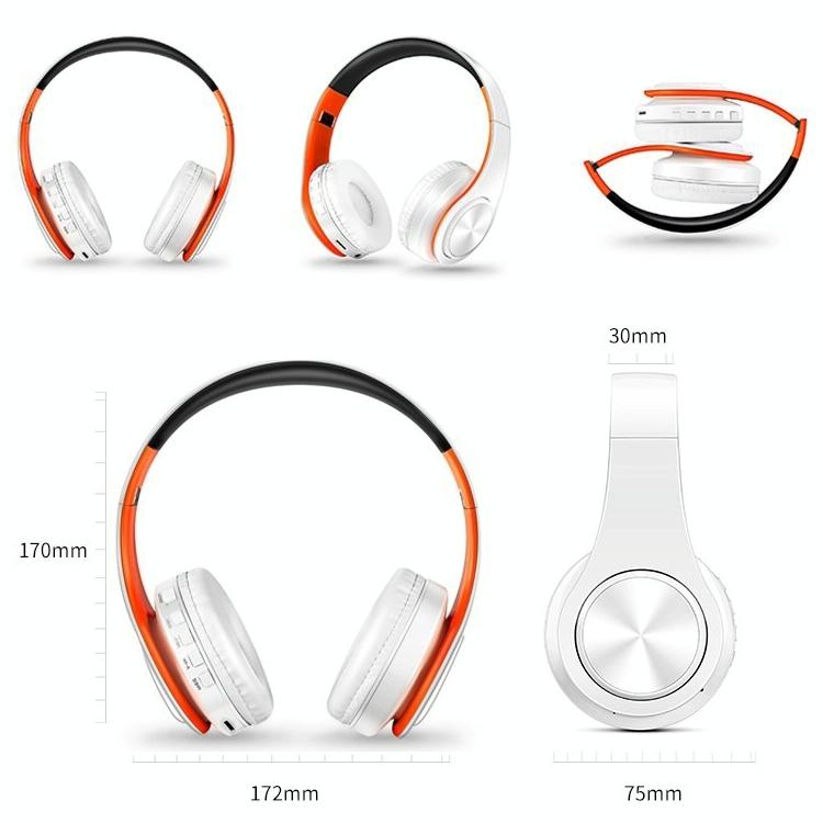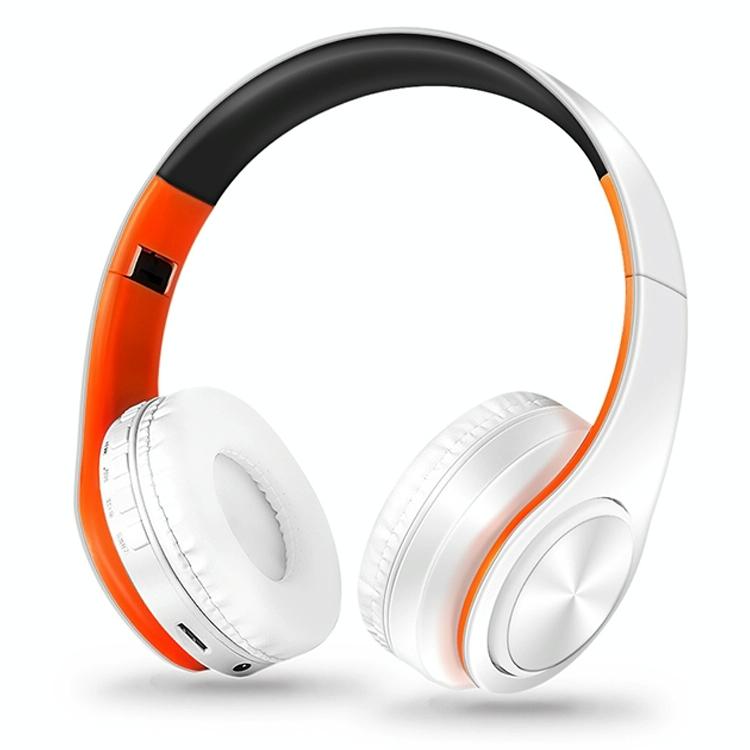 LPT660 Foldable Stereo Bluetooth Headset MP3 Player, Support 32GB TF Card & 3.5mm AUX(White Orange)