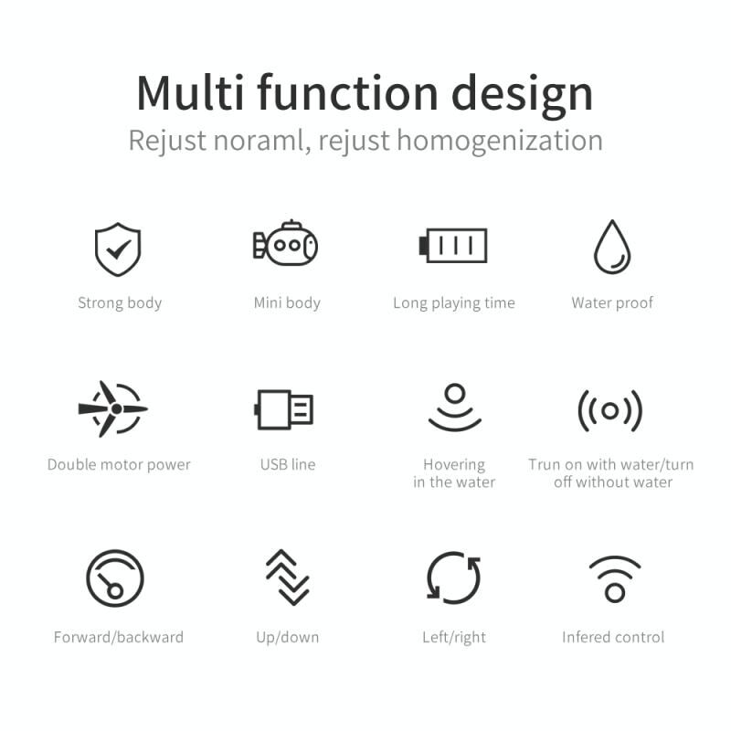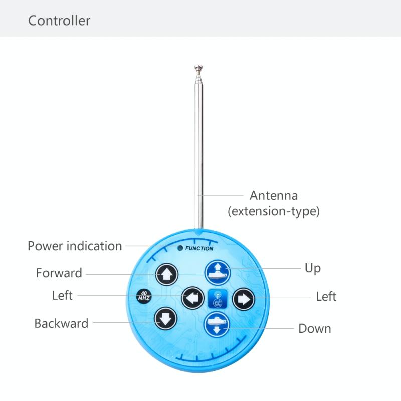 8. It can move forward, backward, turn left, turn right, ascend, descend, rotate 360 degrees, just like a real submarine.