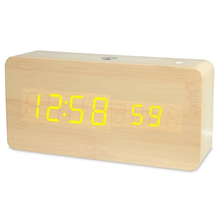 LT-1035 Οθόνη LED Ψηφιακό ρολόι ξυπνητηριού APP Smart (κίτρινο φως ξύλου μπαμπού)