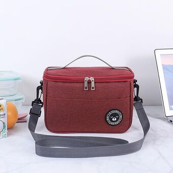 Thermal Lunch Box Bag Durable Waterproof Office Cooler Lunchbox with Strap L(Dark Red)