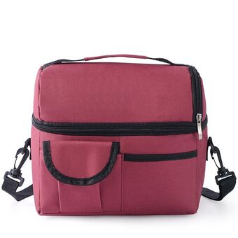 Thermal Lunch Box Bag Durable Waterproof Office Cooler Lunchbox with Strap S(Dark Red)