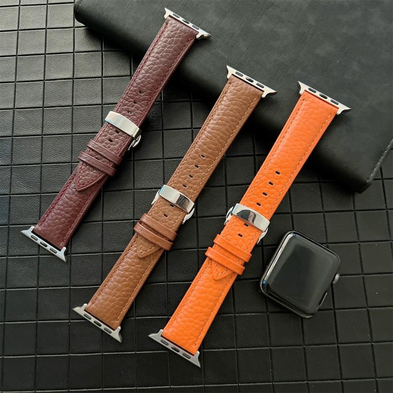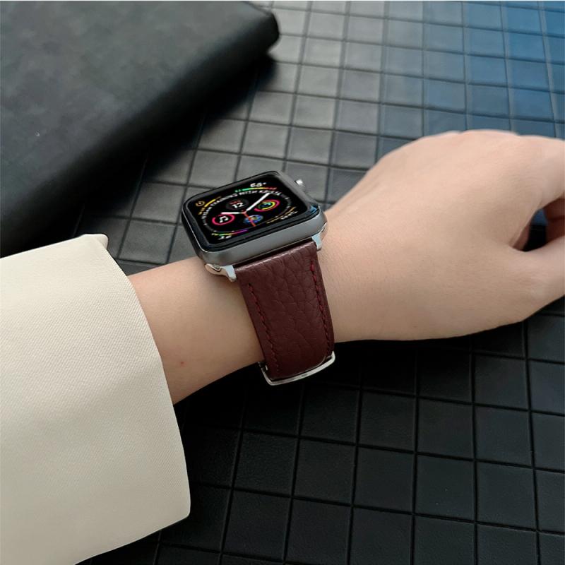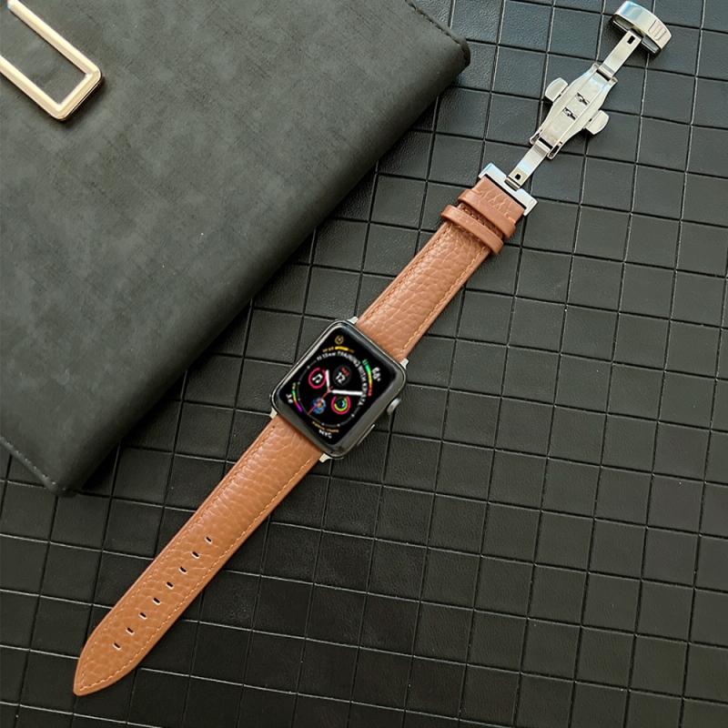 Λουράκι ρολογιού Lychee από γνήσιο δέρμα για Apple Watch Series 9&8&7 41mm / SE 3&SE 2&6&SE&5&4 40mm / 3&2&1 38mm (Καφέ)
