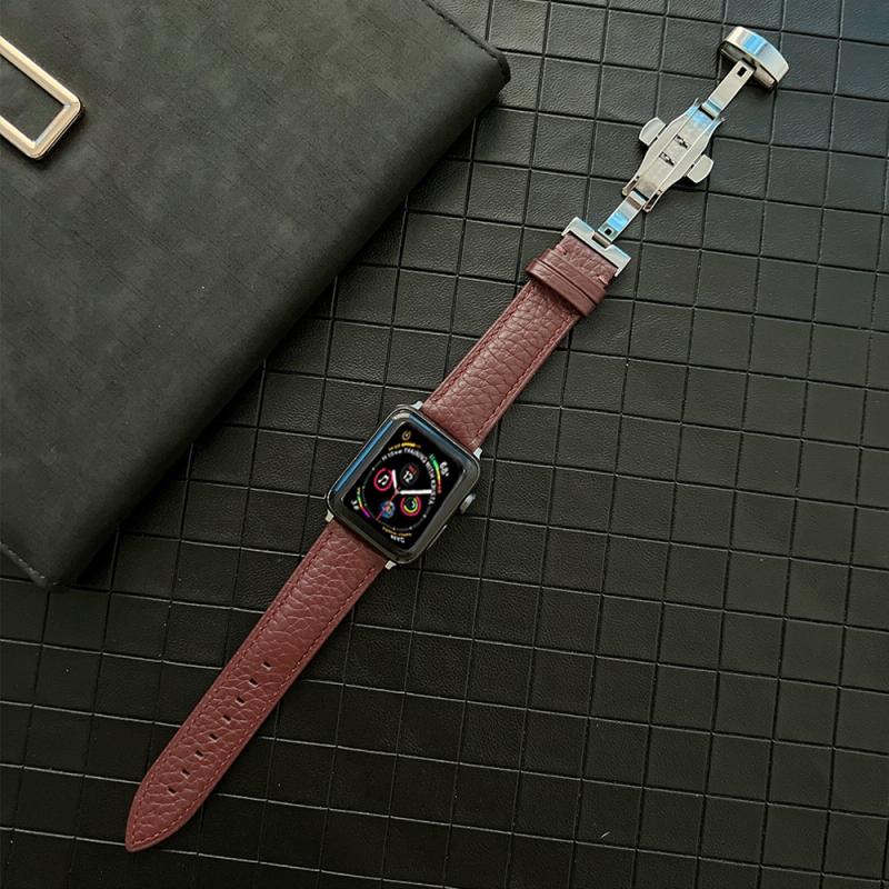 Λουρί ρολογιού Lychee από γνήσιο δέρμα για Apple Watch Series 9&8&7 41mm / SE 3&SE 2&6&SE&5&4 40mm / 3&2&1 38mm (Καφέ)