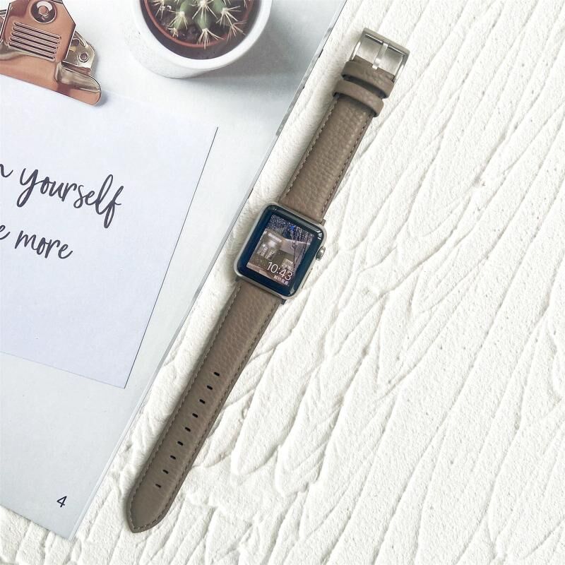 Lychee Top Layer Cowhide Watch Band For Apple Watch Ultra 49mm&Watch Ultra 2 49mm / Series 9&8&7 45mm / SE 3&SE 2&6&SE&5&4 44mm / 3&2&1 42mm(Grey)