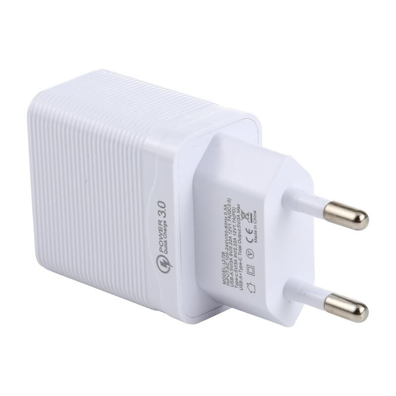 Φορτιστής Ταξιδίου Γρήγορης Φόρτισης LZ-728 QC 3.0 USB + PD 20W USB-C / Type-C, Ευρωπαϊκό Βύσμα (Λευκό)
