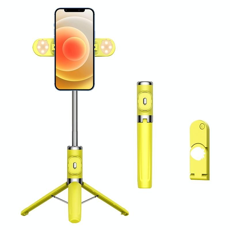 M01S Bluetooth Remote Control Dual Fill Light Tripod Selfie Stick (Yellow)