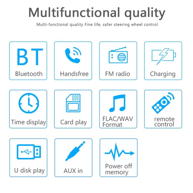 6. Basic functions: radio (FM), card reading, U disk (audio), AUX function, Bluetooth function, RCA audio output can be connected to the subwoofer