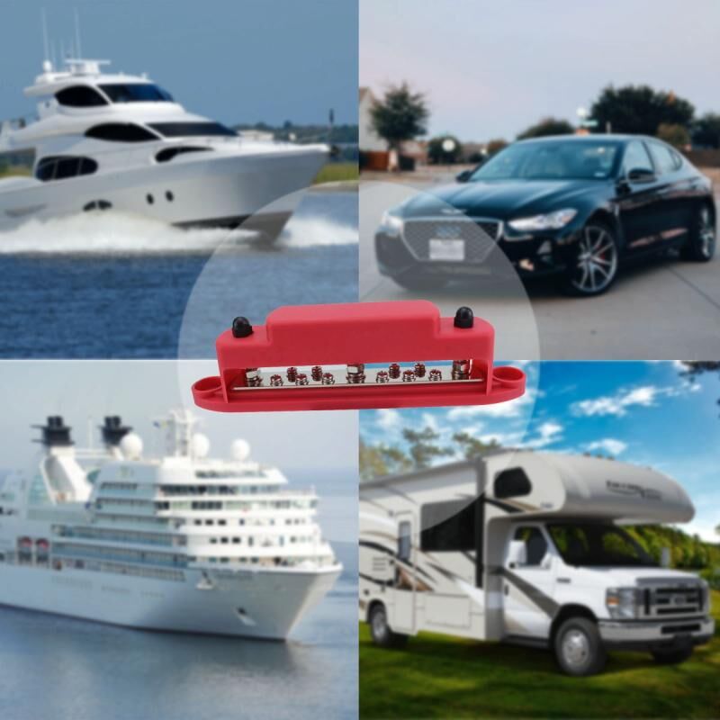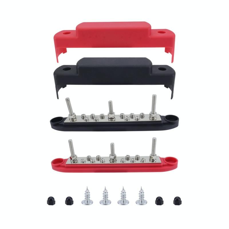 M6 3-post 10-way RV Yacht Βραχυκύκλωμα απόδειξη βάσης DC Busbar, Χρώμα: Κόκκινο + Μαύρο 1 ζεύγος