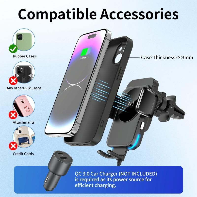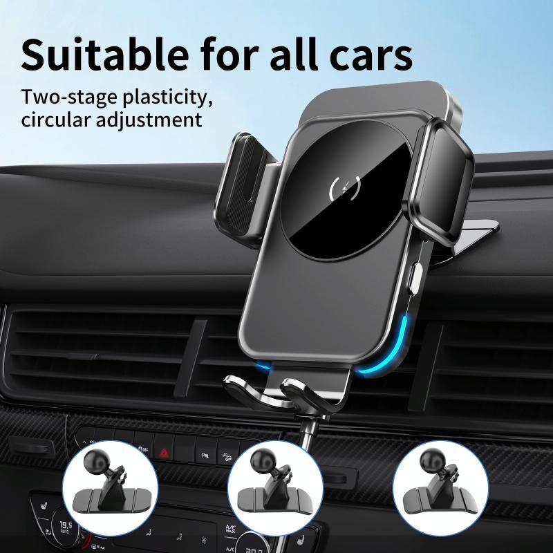 Packaging list: wireless charging bracket, air outlet clamp, base, Type-C cable, user manual, packaging box