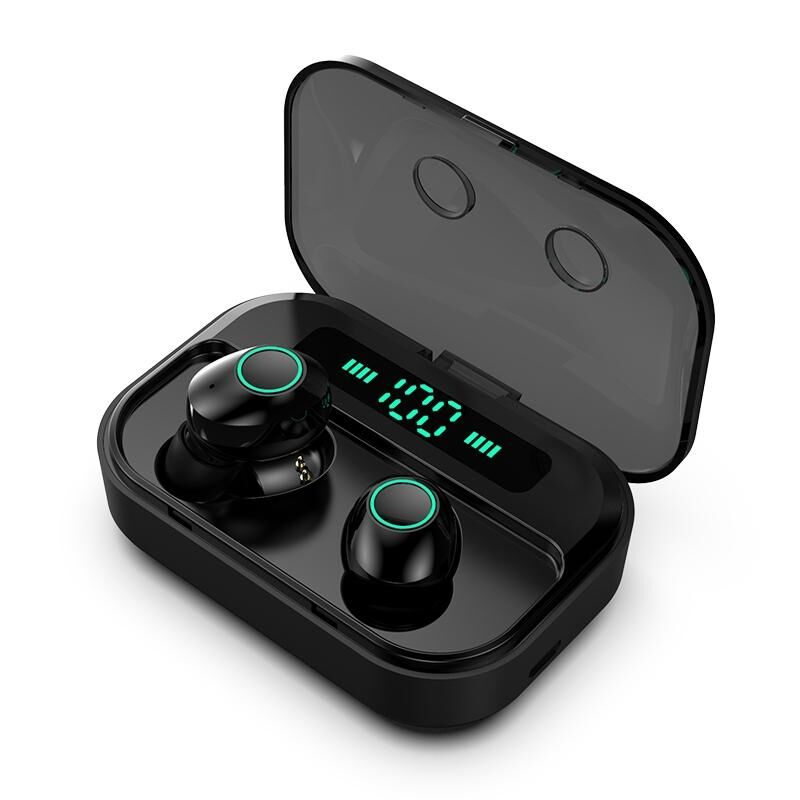 Ακουστικά Bluetooth M7 TWS V5.0 Διφωνικά Ασύρματα Στερεοφωνικά με Θήκη Φόρτισης και Ψηφιακή Οθόνη (Μαύρο)