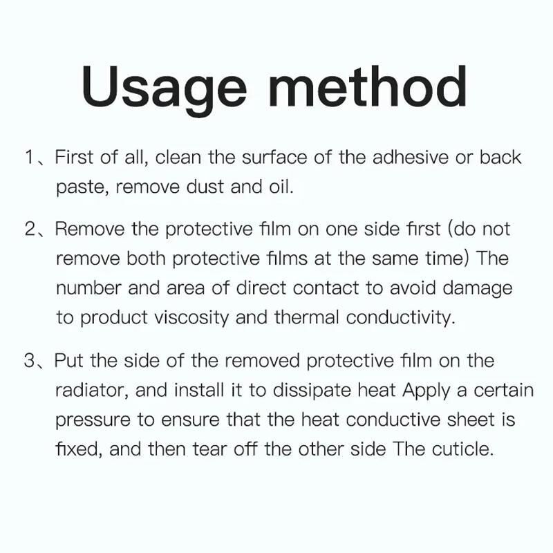 3. Stick the side with the protective film torn off to the radiator. After installation, apply a certain amount of pressure to the radiator to ensure that the thermal conductive sheet is fixed, and then tear off the protective film on the other side