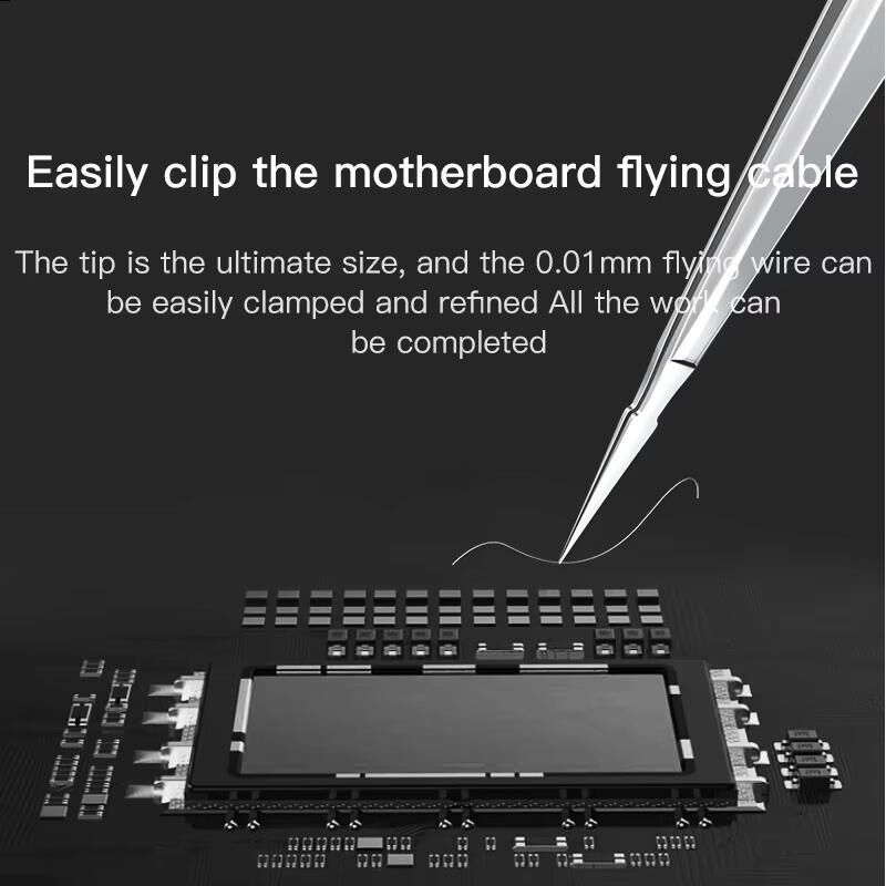 1. The tip is extremely large, 0.01mm flying wire can be easily clamped, and even the most delicate work can be completed