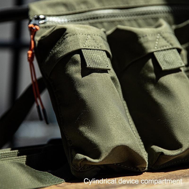 5. Cylindrical device compartment, hook and loop fastener bag
