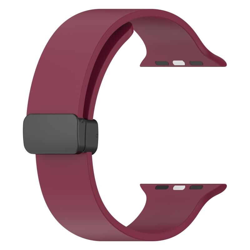 Magnetic Black Buckle Smooth Silicone Watch Band For Apple Watch Series 8&7 45mm / SE 2&6&SE&5&4 44mm / 3&2&1 42mm(Burgundy)