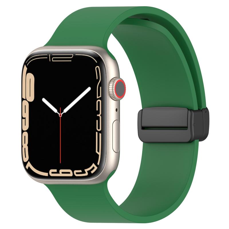 Magnetic Black Buckle Smooth Silicone Watch Band For Apple Watch Series 8&7 45mm / SE 2&6&SE&5&4 44mm / 3&2&1 42mm(Dark Green)