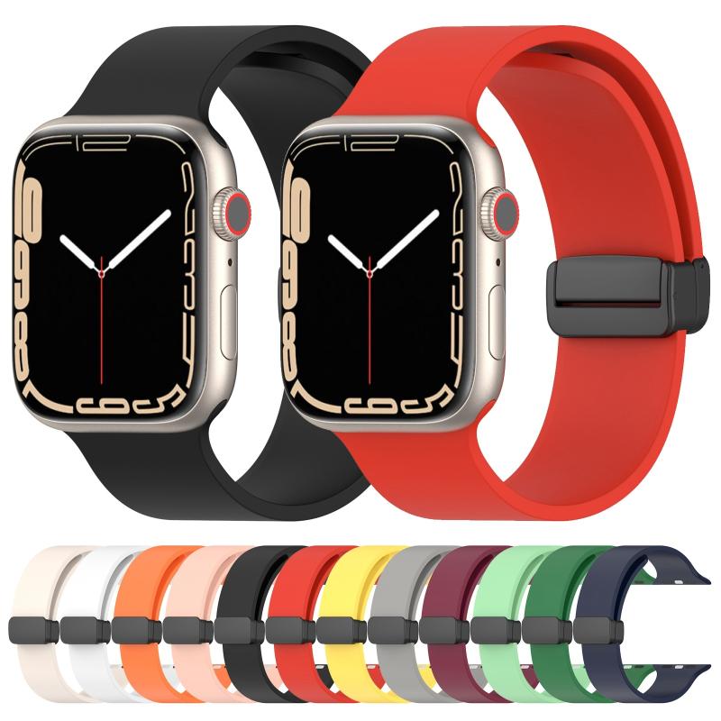 Magnetic Black Buckle Smooth Silicone Watch Band For Apple Watch Series 8&7 45mm / SE 2&6&SE&5&4 44mm / 3&2&1 42mm(Pink)