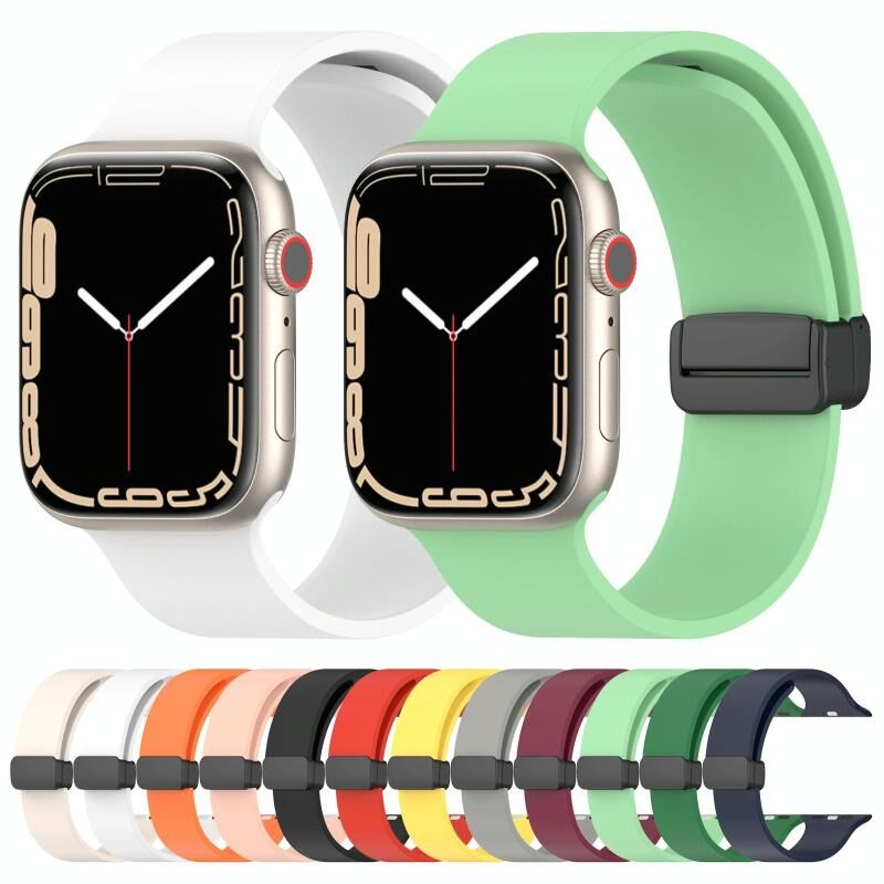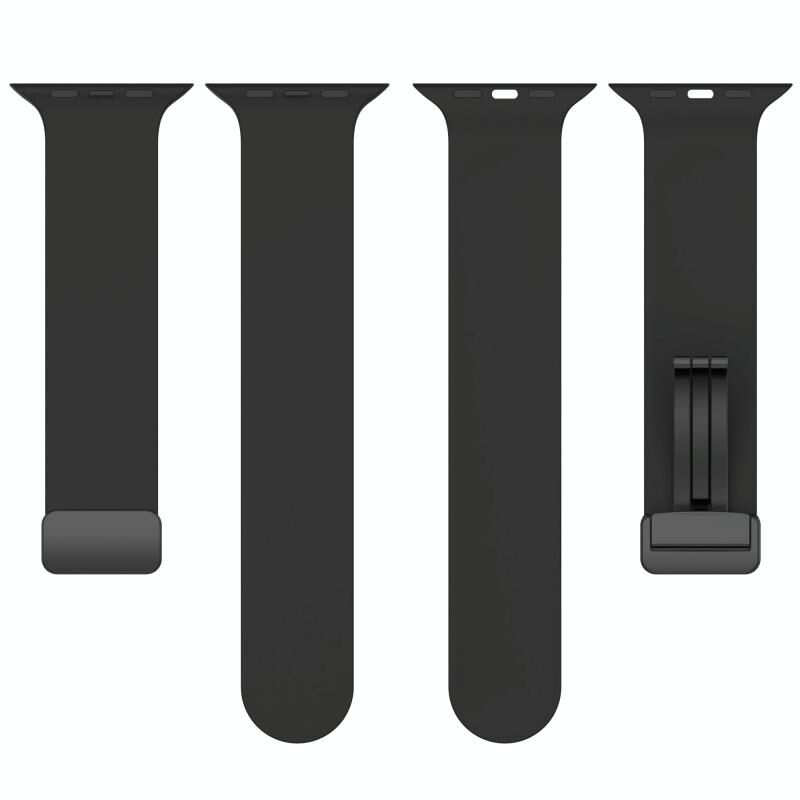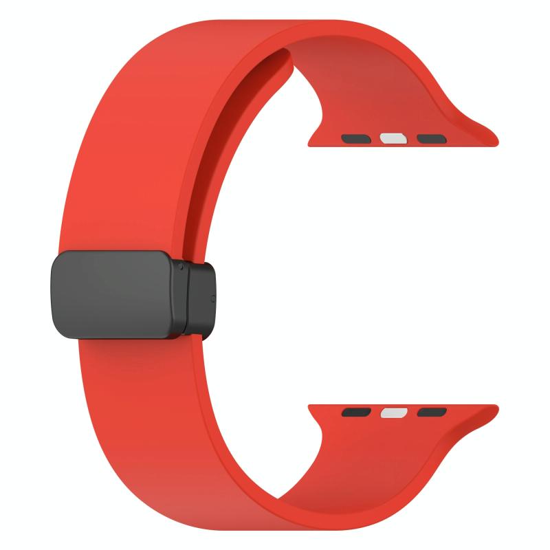 Magnetic Black Buckle Smooth Silicone Watch Band For Apple Watch Series 9&8&7 41mm / SE 3&SE 2&6&SE&5&4 40mm / 3&2&1 38mm(Red)