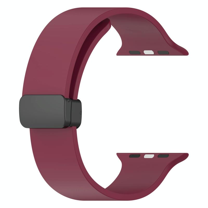 Magnetic Black Buckle Smooth Silicone Watch Band For Apple Watch Ultra 49mm(Burgundy)